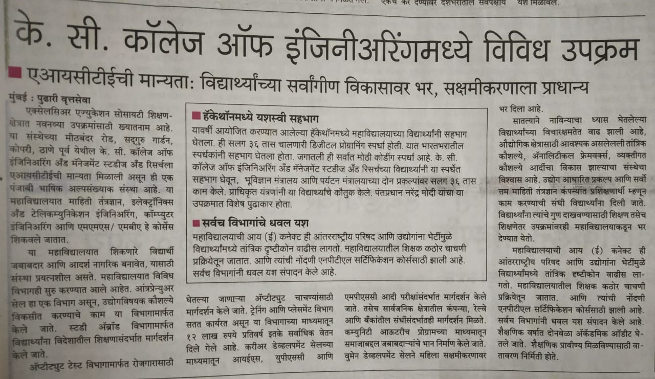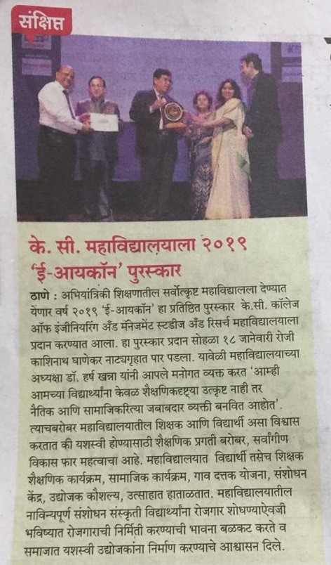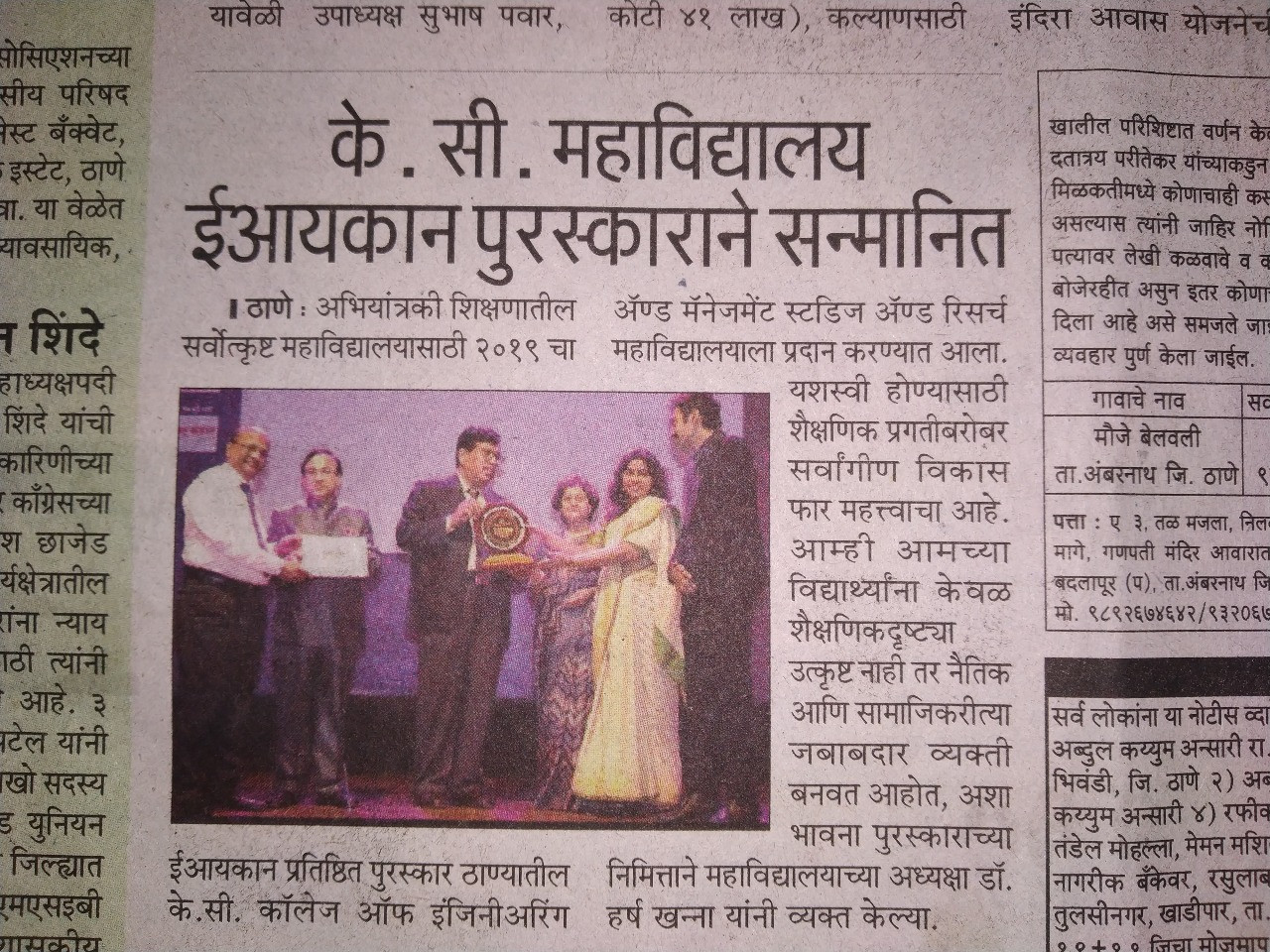 KCCEMSR received National Education Award July 2019 by ABP News.