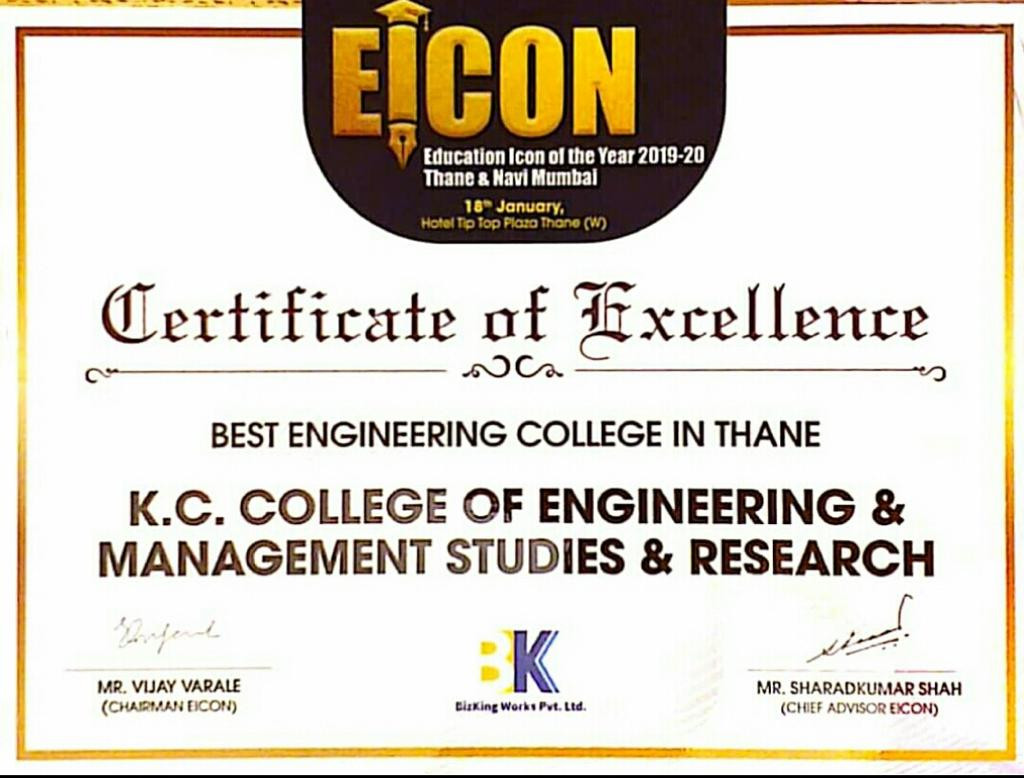 KCCEMSR baged EICON Award "Best Engineering College" in 2019.