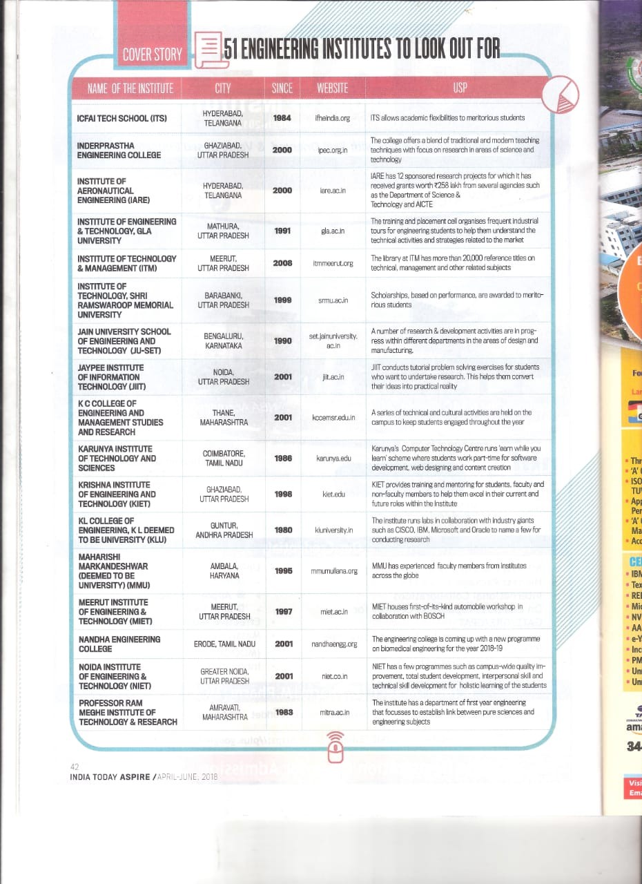 In India Today Aspire K. C. College of Engineering and Management Studies and Research ranked in top 51 colleges