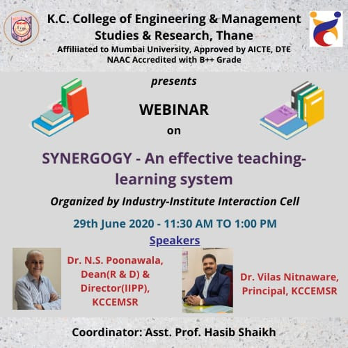 The Industry-Institute Interaction Cell of KCCEMSR organized A webinar on Synergogy- An Effective Teaching Learning System.