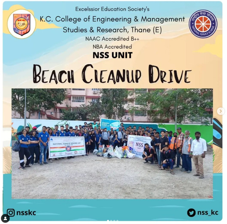 ✨ NSS unit of K.C. College Engineering Management Studies and Research went on a beach cleanup drive at Prabhadevi Beach on, 4th February 2023 ✨