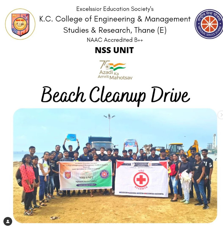 ✨ NSS unit of K.C. College Engineering Management Studies and Research went on a beach cleanup drive along with Youth Red Cross (YRC) at Girgaon Chowpatty on Saturday, September 11,2022 ✨