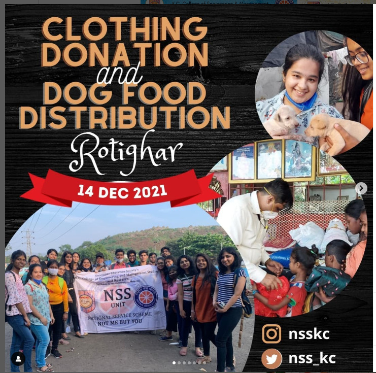 On 14th December, KC NSS team donated clothes at Rotighar, Thane east and also did dog food distribution. The whole event was held under the guidance of Program Officer Asst. Prof. Pratap Nair.