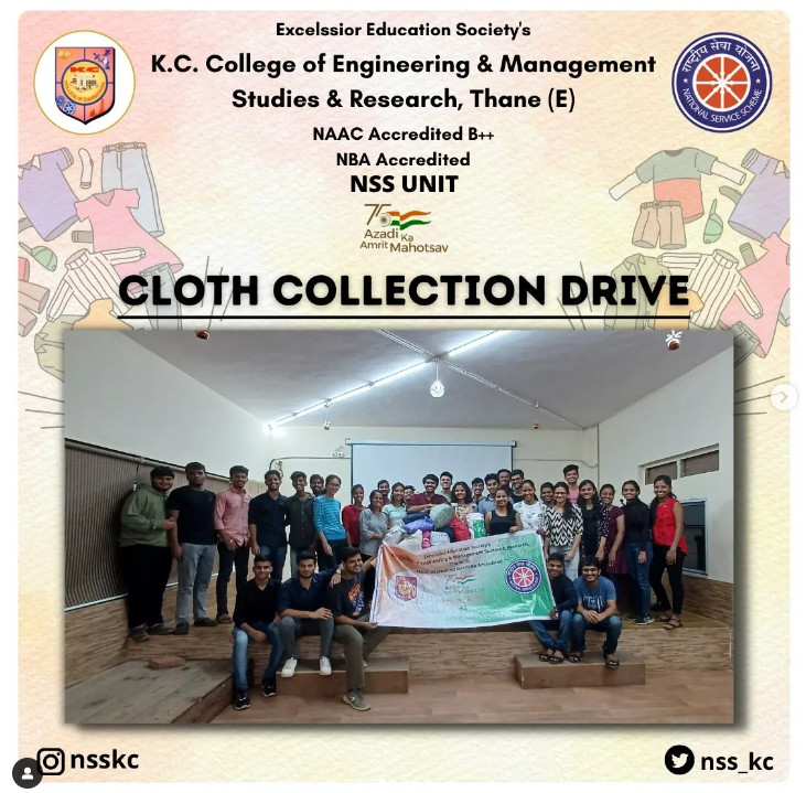 ✨ The clothes collection drive was organized by the N.S.S. unit of KC college of engineering Thane. Many NSS volunteers themselves contributed to the drive. The collection of clothes and their proper segregation was done. Moreover, they were the key to inspiring other fellow students and faculty members ✨