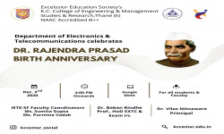 The Department of Electronics and Telecommunication organized a “Dr. Rajendra Prasad Birth Anniversary Celeberation” for all the students & faculties. The session started with the speech given by H.o.D Electronics & Telecommunication Dr. Baban U. Rindhe who has given insights of Dr. Rajendra Prasad. He has given brief biography of Dr. Rajendra Prasad & motivated all the students to follow the qualities of him & never gave up for anything. After this Principal Sir Dr. Vilas Nitnaware explained the importance of contribution of Dr. Rajendra Prasad by giving a short story. The event ended with vote of thanks.