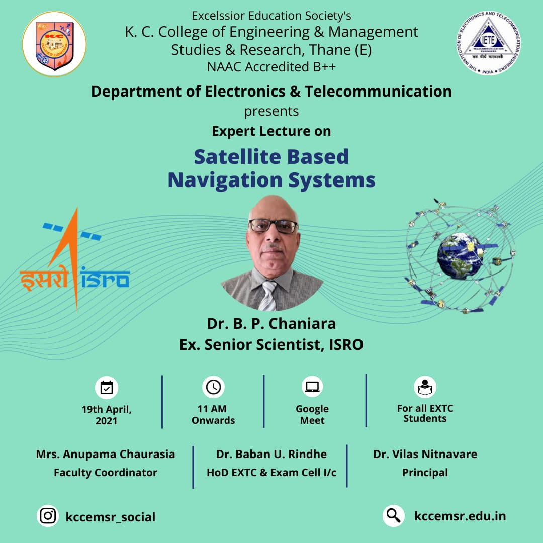 Department of Electronics and Engineering present Expert lecture on Satellite based Navigational System on April 19th 2021