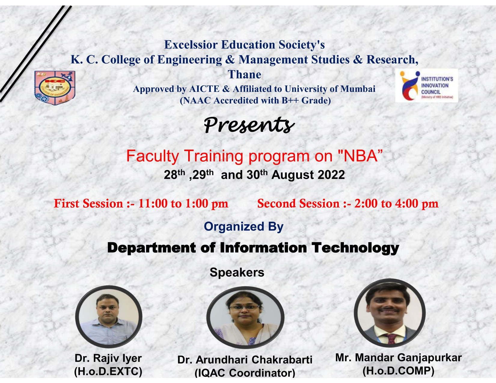 Faculty Training Program on NBA(2022)