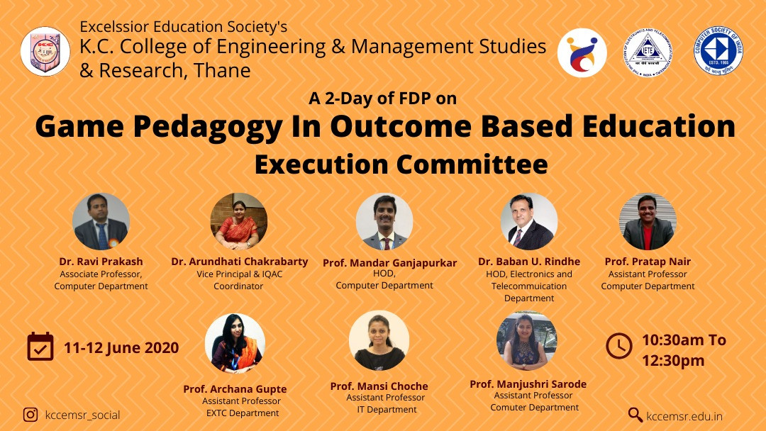 The IQAC, Department of Computer Engineering and Electronics and Telecommunication jointly organized FDP on Game Pedagogy in Outcome Based Education.