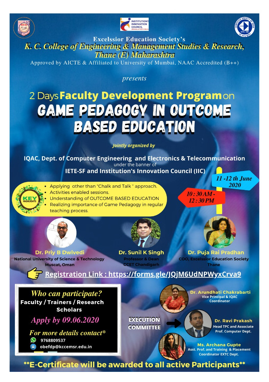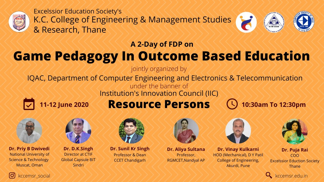 The IQAC, Department of Computer Engineering and Electronics and Telecommunication jointly organized FDP on Game Pedagogy in Outcome Based Education.