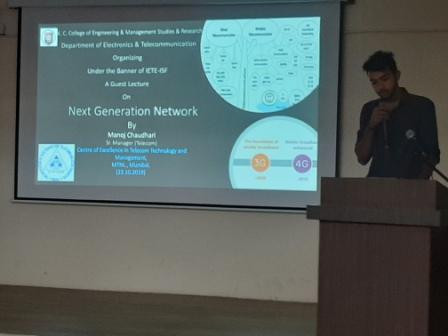 Department of Electronics and Telecommunication organized Guest Lecture on “Next Generation Network” by Mr. Manoj Chaudhari Sr. Manager (Telecom) Centre of Excellence in Telecom Technology and Management, MTNL,Mumbai on 23rd October, 2019 for Final year students.
