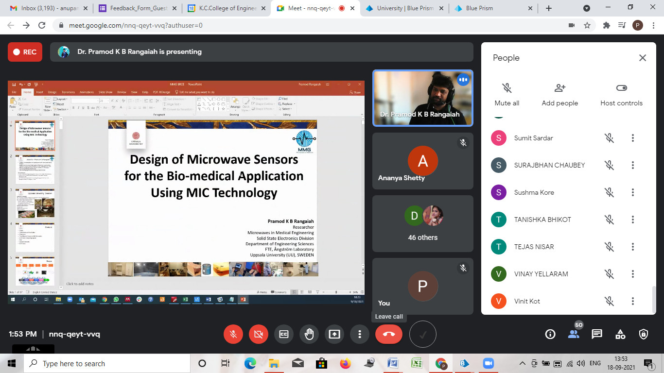 In the last few years, the world of engineering is undergoing tremendous changes and developments. To keep pace with the current trends and challenges in any discipline, one has to continuously upgrade his skills. The Guest Lecture on “Design of Microwave Sensor for BioMedical Application using MIC technology” under IETE provided a forum for discussing advancements and directions for innovative design methodology of Microwave sensors and related application areas using MIC technology.