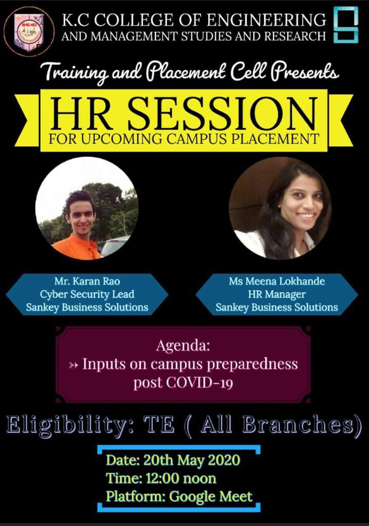 The training and placement cell of KCCEMSR organised HR Session for upcoming campus placement for TE students by Ms. Meena Lokhande and Mr. Karan Rao.