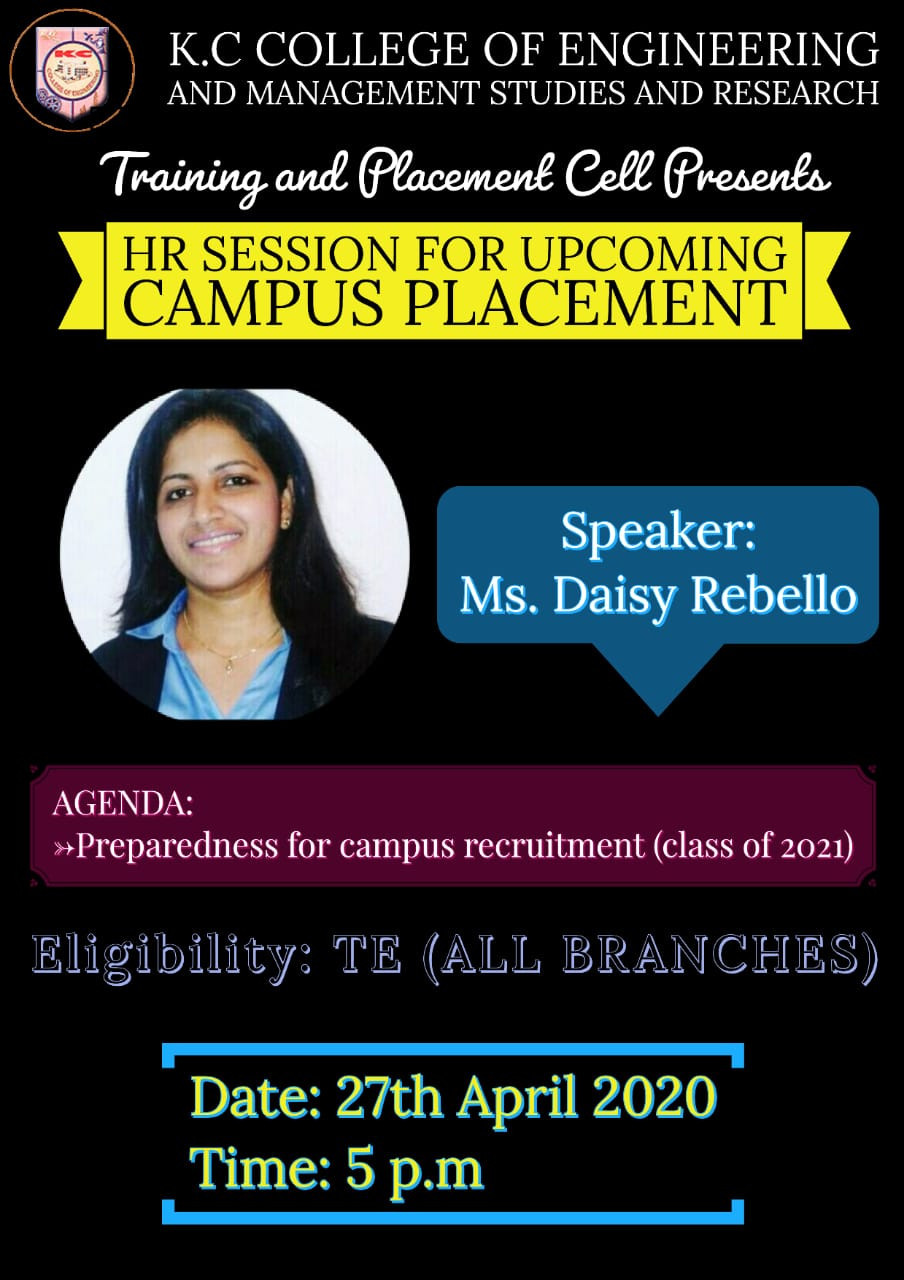 KCCEMSR organised HR session for upcoming campus placements for TE students.