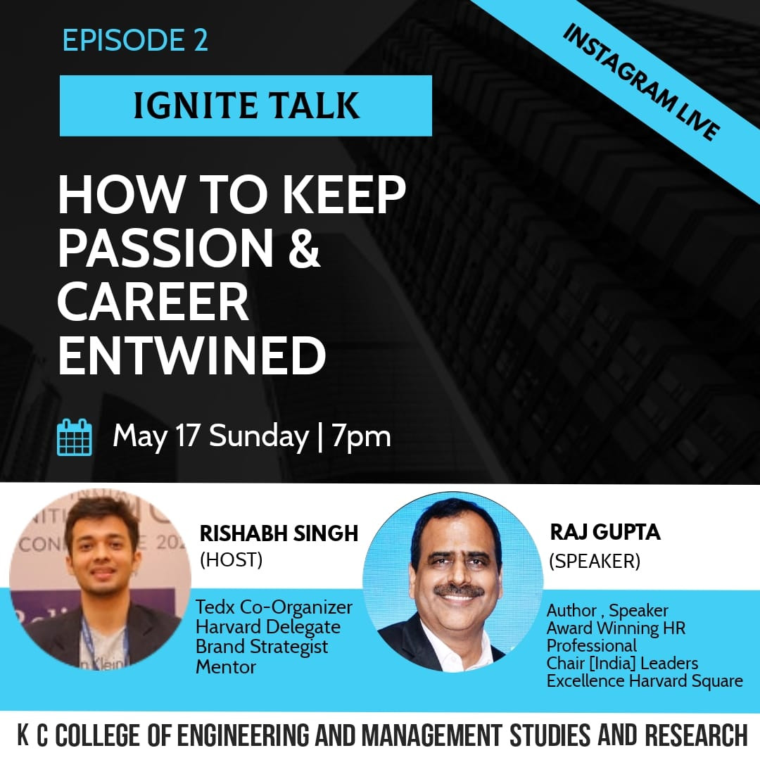 KCCEMSR organized an Ignite talk on "How to keep passion and career entwined" by Mr. Rishabh Singh and Mr. Raj Gupta.