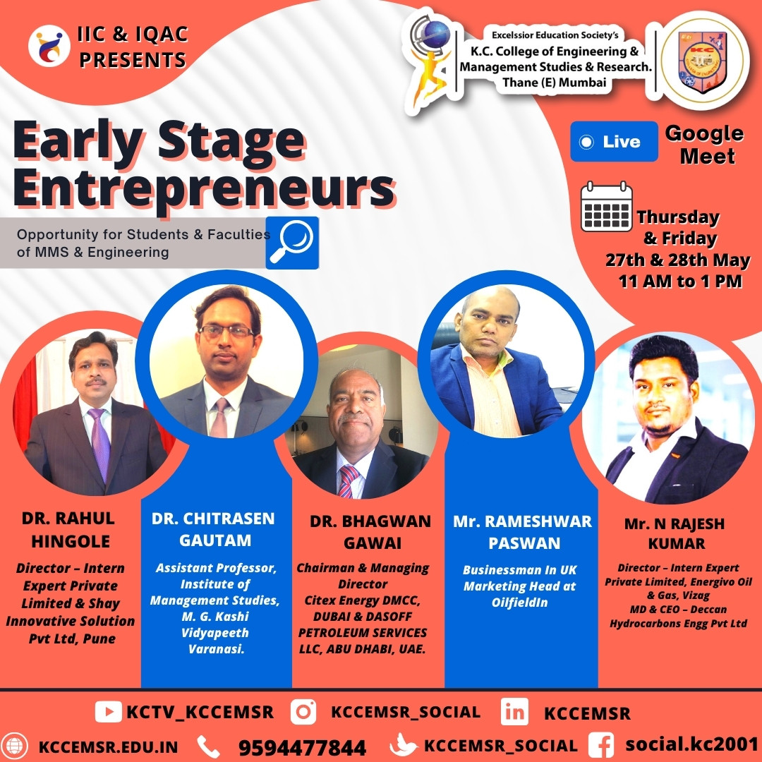 IIC & IQAC presents early stage entrepreneurs on 27tth and 28th May