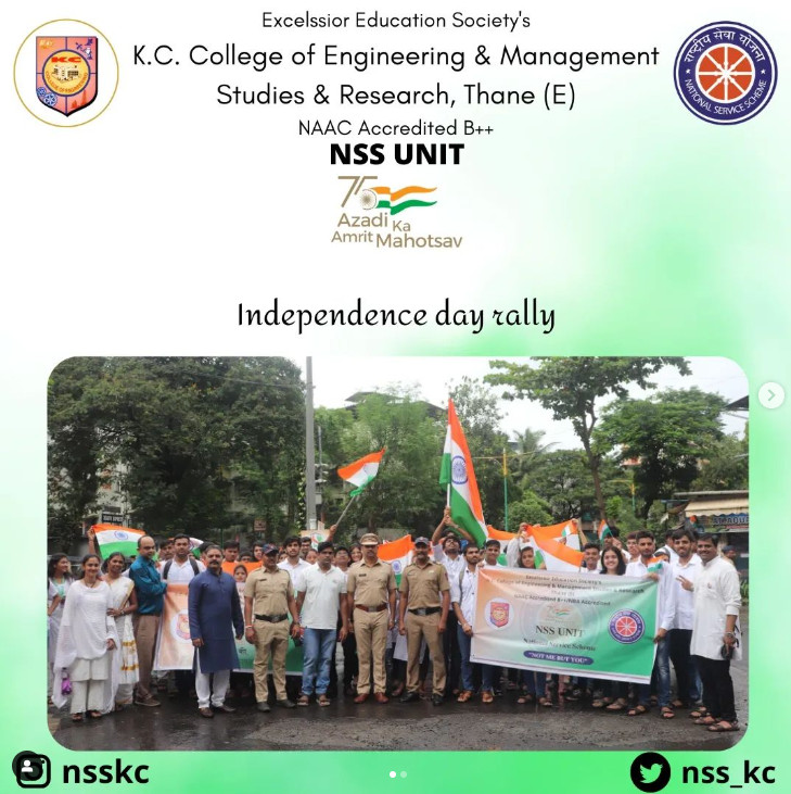 🌟NSS unit of K.C. College Engineering Management Studies and Research organized a rally along with KB College on the occasion of AZADI KA AMRIT MAHOTSAV🌟