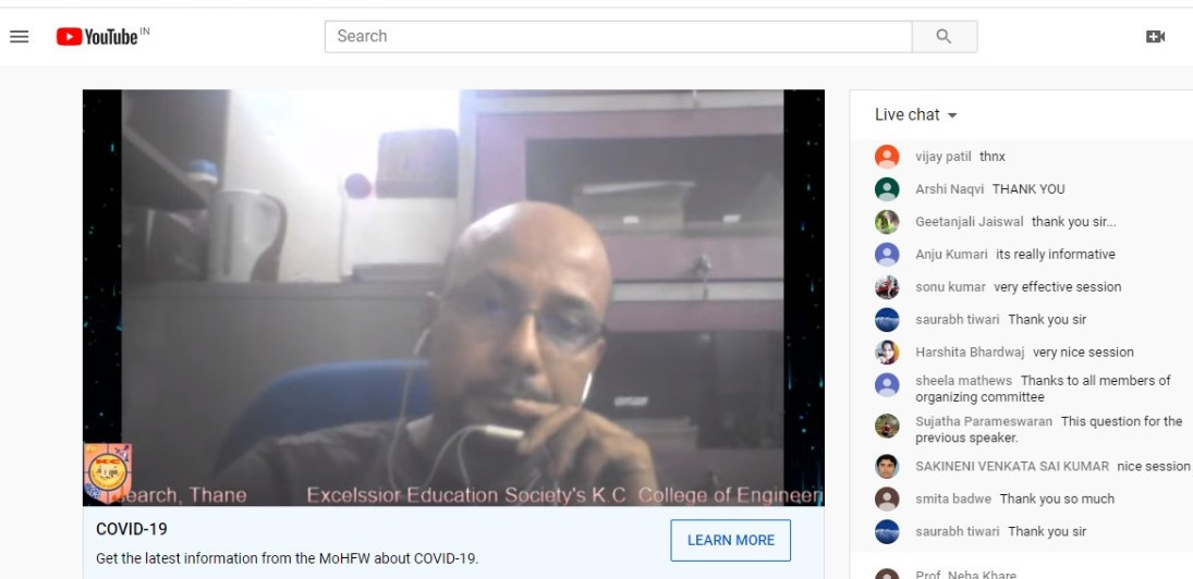 As a part of activity in the COVID-19 pandemic situation, Department of Humanties and Applied Sciences of K.C.College of Engineering and Management studies and Research organized two days International Seminar on Emerging Technologies of Nano Science, Environment and Energy: COVID-19 RESTRICTION* on 23 June, 2020 and 24 June, 2020 using You tube platform. The idea behind this was to guide the upcoming researchers and spread the knowledge in Nano science field.