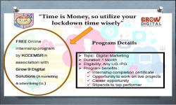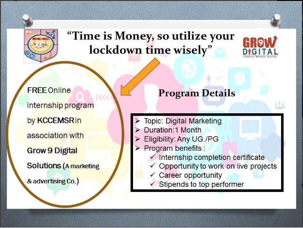 Free online internship program is organized by KCCEMSR in association with Grow 9 Digital Solutions.