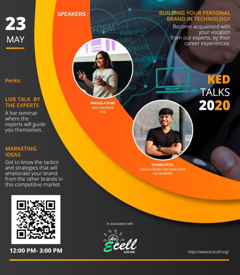 KCCEMSR E cell organized KC Entrepreneur Development ( KED) Talks with two brilliant speakers Manjula Dube and Vihang Patel on “Building your Personal Brand in Technology".
