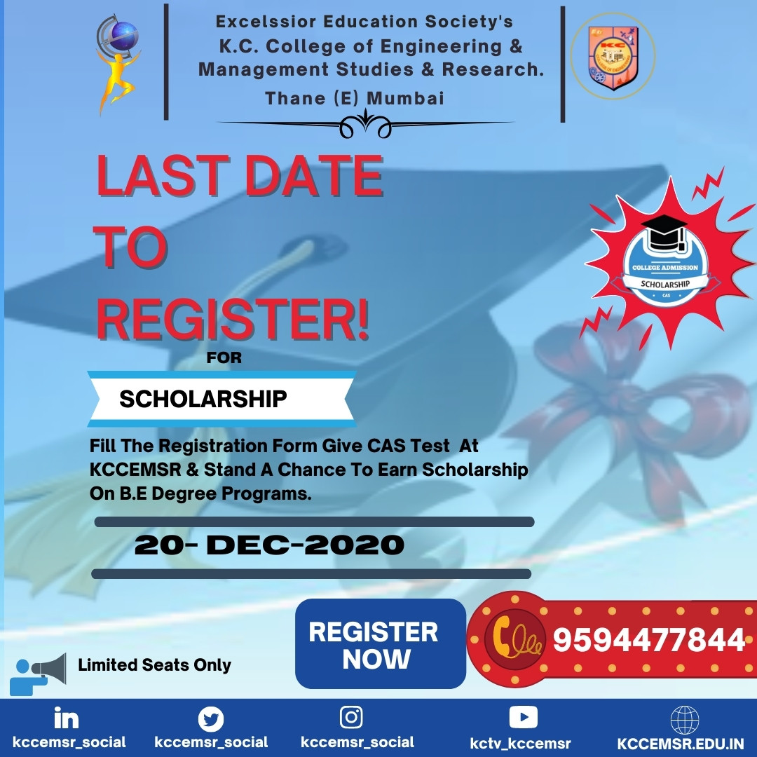 KCCEMSR has given a chance to earn scholarship on BE degree program.