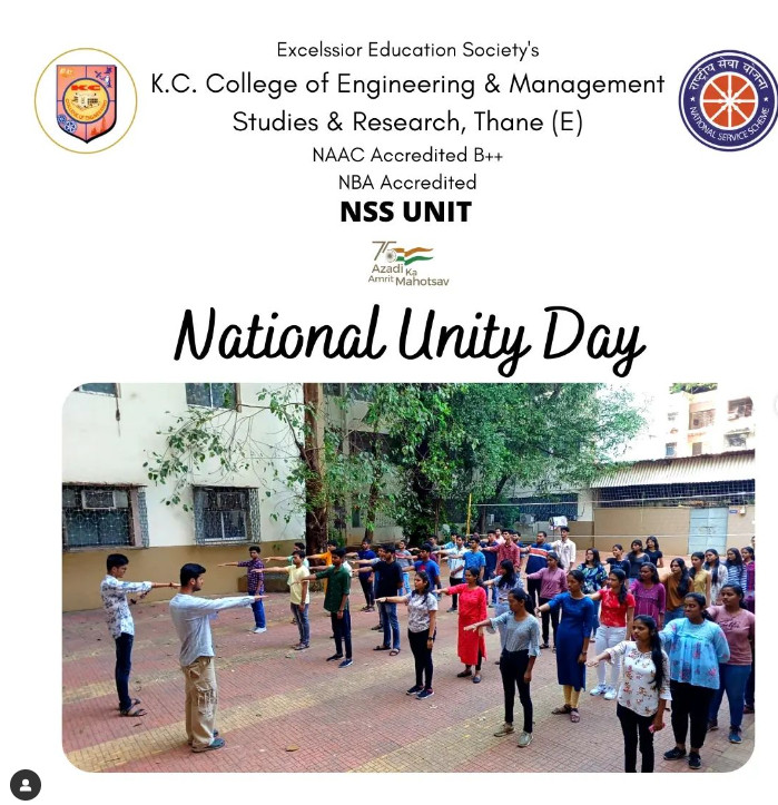 ✨The National Service Scheme unit of K.C.College of Engineering and Management Studies and Research celebrated National Unity Day on the 31st of Oct 2022 to commemorate the birth anniversary of Sardar Vallabh Bhai Patel✨