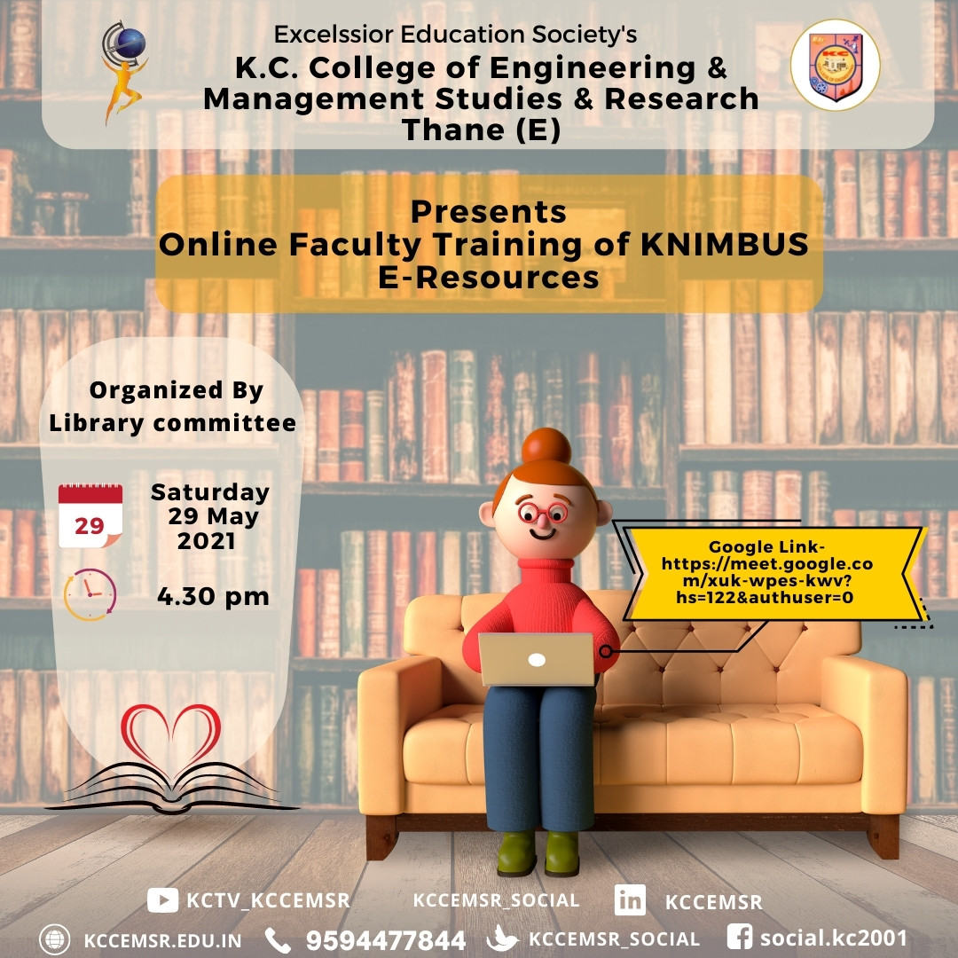 KCCEMSR presented Online Faculty Training of Knimbus E-resources organized by Library committee on 29th May 2021.