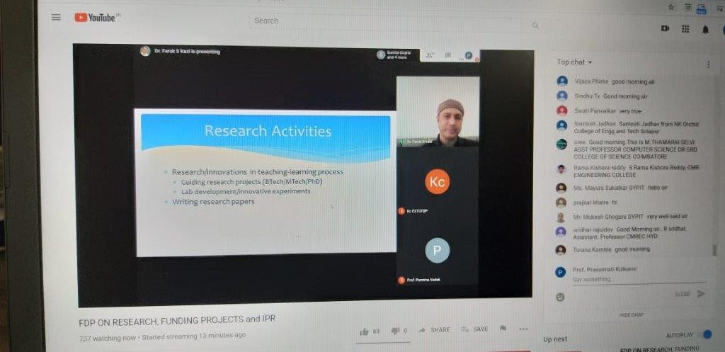 Department of Electronics and Telecommunication, K.C. College of Engineering & Management Studies & Research organized a 4 days online Faculty Development Program in a covid-19 situation to enlighten the people regarding research, new technologies trends and opportunities for the researchers, IPR, Education 4.0 and project funding, to those who are eager to enter the research area.