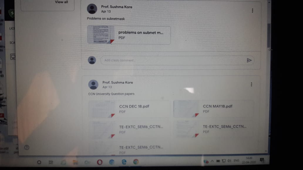 KCCEMSR staff are conducting online lectures, practicals and sharing different study material to the students through different softwares like Google Classroom, Hangout Meet, google groups etc.