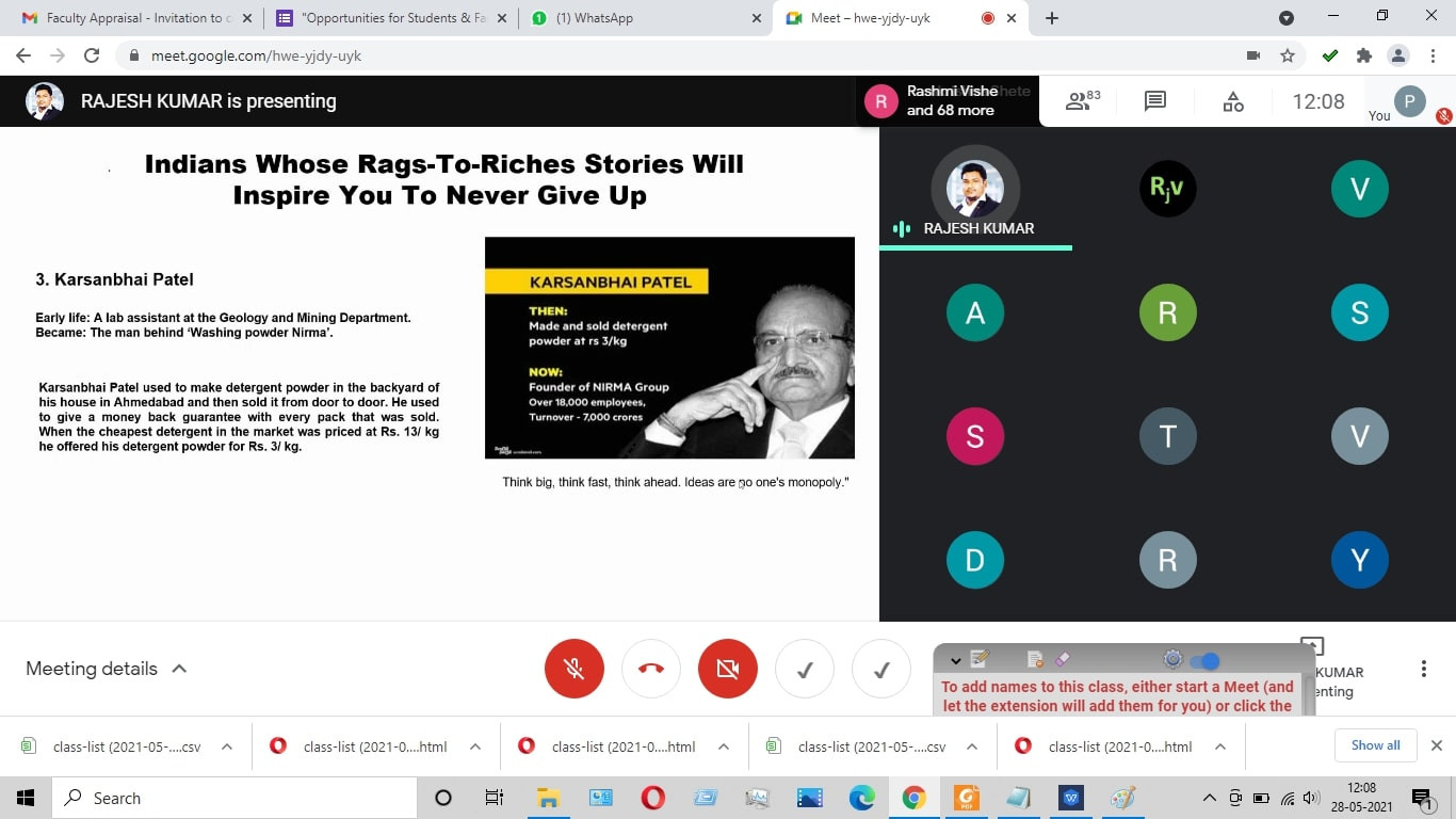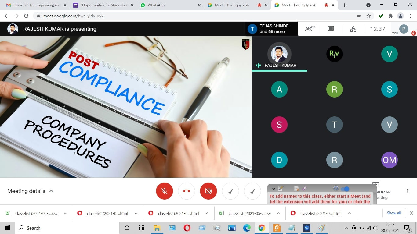 ‘Opportunities for Students & Faculties - Early Stage Entrepreneurs’ was organized by IIC and IQAC of K.C. College of Engineering and Management Studies and Research ,Thane on 27th and 28th May 2021.