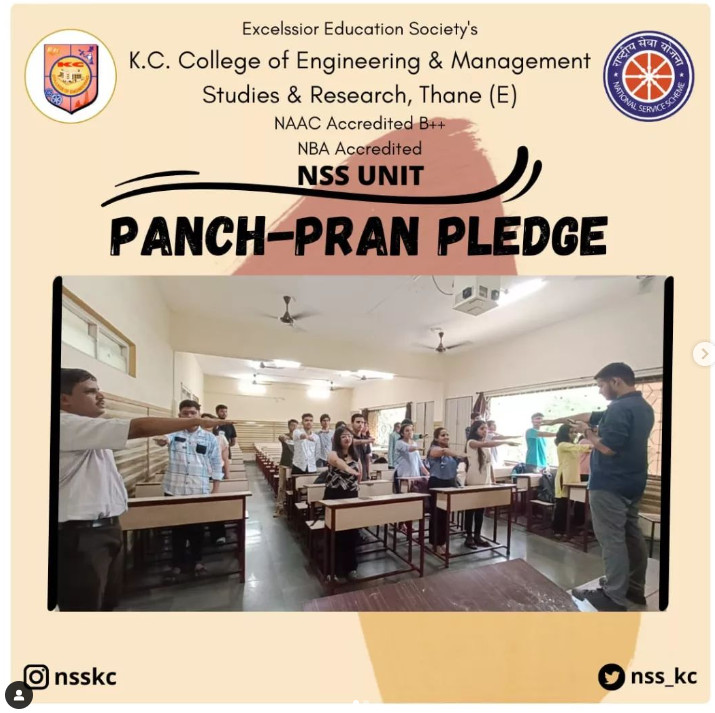 ✨The National Service unit of K.C College of Engineering and Management Studies and Research Conducted Pledge on 2 nd August of 2023 To celebrate *Panch -Pran Divas* ✨