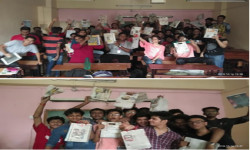 Paper bag making activity was conducted for first year students to spread awareness of carcinogenic effects of plastic bags.