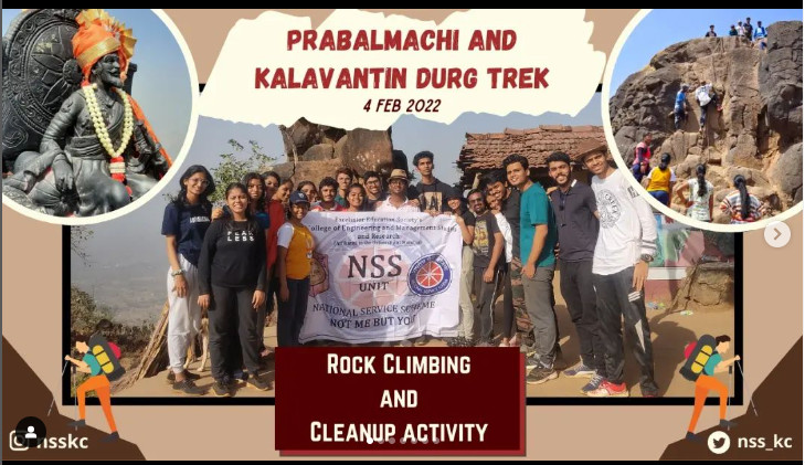 ⭐On the 4th of February 2022, KC NSS went on a trek to Prabalmachi. Volunteers performed rock climbing and a clean up activities. The volunteers learned the history of the place. The trek was a success and members got a lot of new experiences.⭐