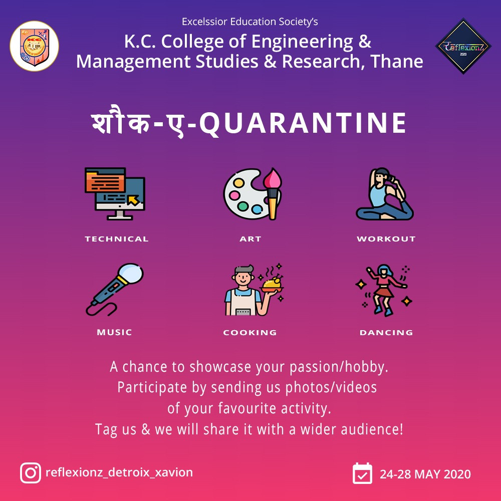 KCCEMSR organized Shauk-A-Quarantine competition on technical, art, workout, music, cooking and dancing.