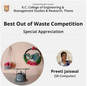 KCCEMSR organized Best out of waste competition and some students are appreciated for the best creativity.