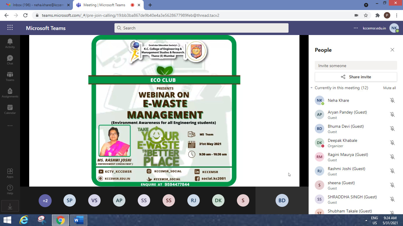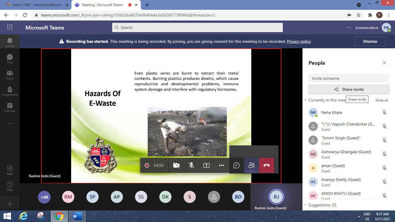 organized a "Webinar on E-Waste Management" on 31.05.2021.