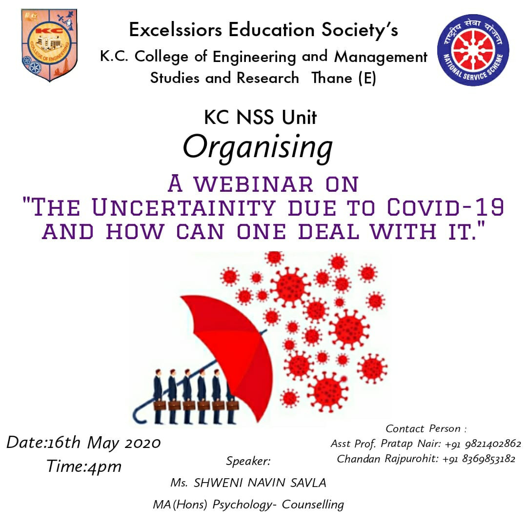 KCCEMSR organized a webinar on "Webinar on Uncertainty due to Covid-19" and how can one deal with it by Ms. Shweni Savla.