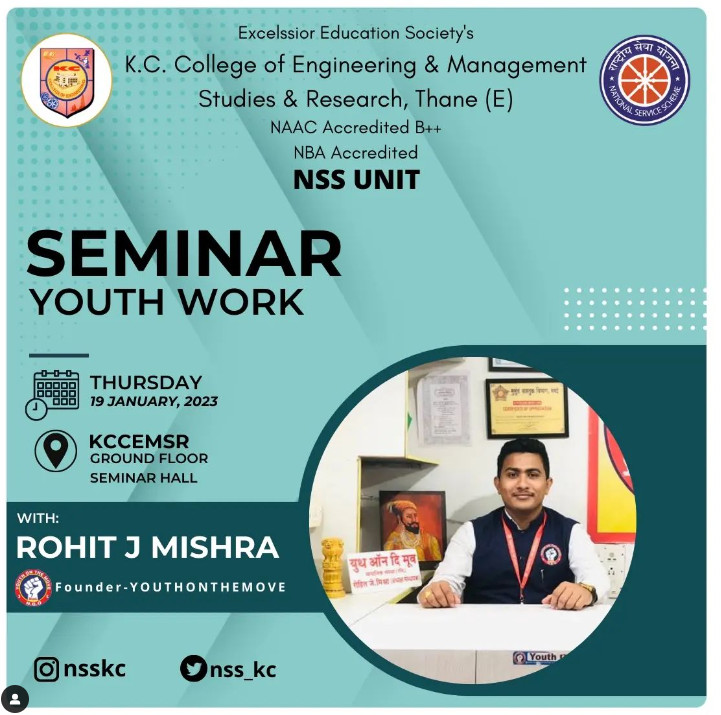 🌟"The NSS unit of the KC College of Engineering and Management Studies and Research is organising a "Youth Work Seminar."🌟